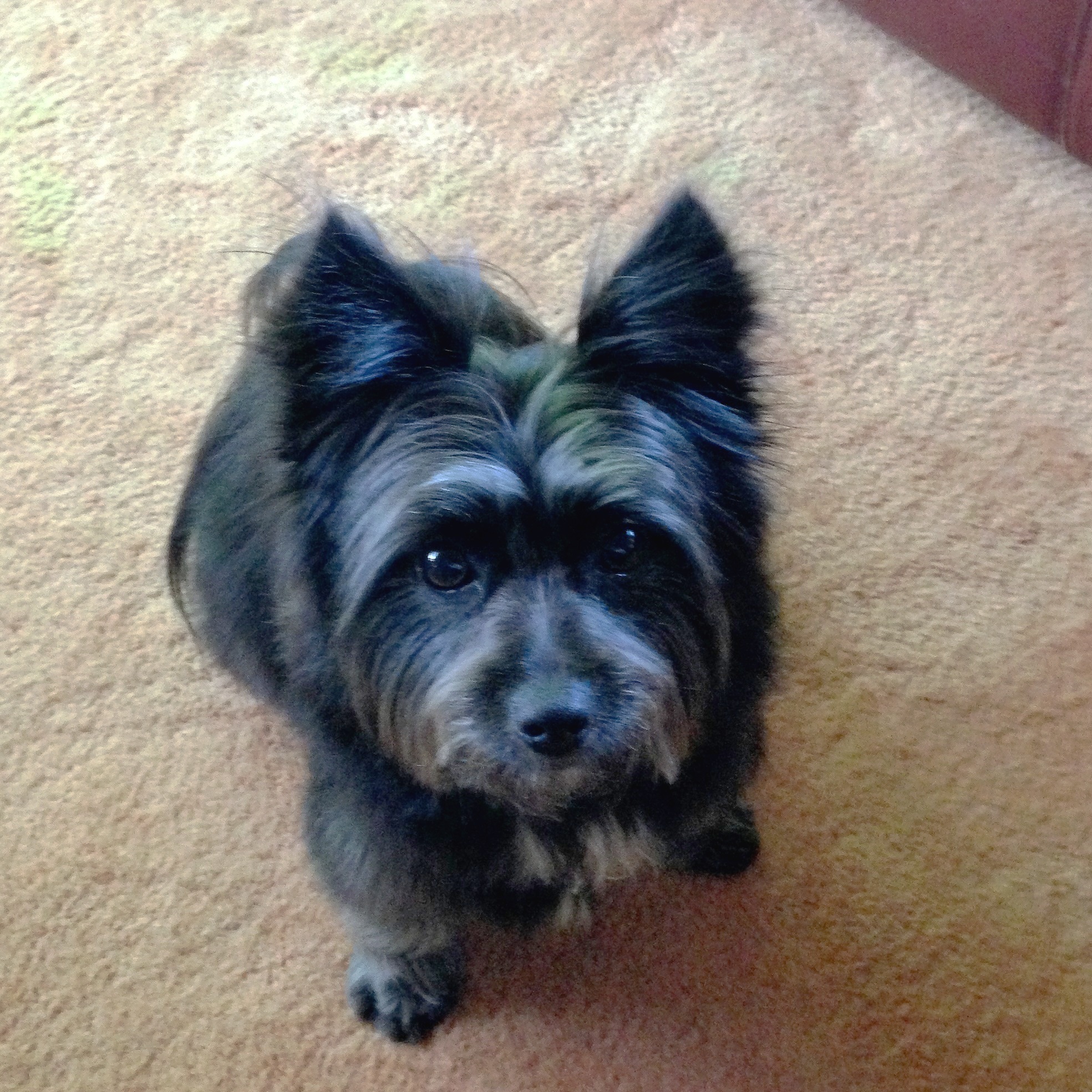 And I’m happy (really I am) that Fiona is so happy and well cared for. Still–I miss her. And in some ways, this surprises me because Fiona is not the perfect dog. The perfect dog was Molly, our 14 year old lab who died 4 months before I bid on Fiona at an auction (I couldn’t help it–she kept looking at me). Molly was a dog’s dog–loyal, affectionate, attentive, and low maintenance. Fiona is a person in the body of an adorable little dog; she is headstrong, persnickety, and smarter than anyone at our house. When I call her (“Fiona, come!”), I can see her considering it. Is it worth it? she wonders; will there be a treat or is this a ruse? Fiona is a picky eater who demands variety. Of course whatever I’m eating has her interest. Fiona does not like to walk in the rain or strong winds. She insists on a minimum of 10 minutes of slowly meandering and sniffing at the beginning of any outing. She enjoys doing the “worm” on the pavement, clearly channeling her inner aerobics instructor. Fiona’s outraged barking follows any person who leaves the house without taking her. In fact, outraged barking is her response to anyone walking or driving by the house and neighbor cats or squirrels cavorting in the yard. Hysterical, frothing at the mouth barking is her reaction to the mailman, UPS truck, and FedEx. What can I say? She’s complicated.